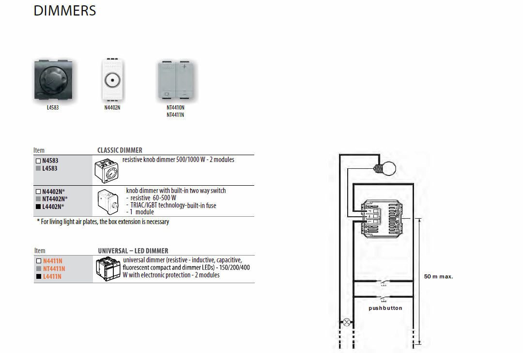 * Dimmer for all types of load and electronic products for energy saving;